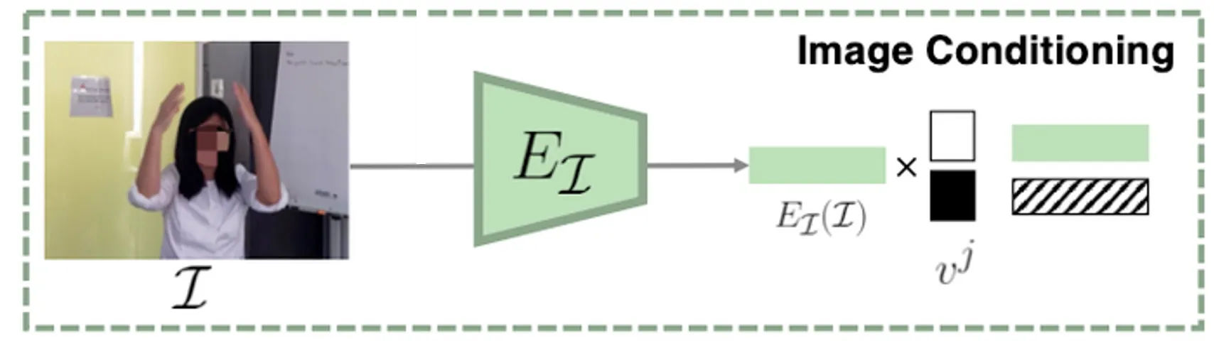 이후에 설명드릴 Diffusion Model 이 각 SMPL Human Joint 에 대한 입력을 가지는데, 이 단계에서 joint 에 따라서 다르게 image conditioning 을 진행합니다. Egocentric Image 에서 관측되는 joint 의 경우에는 해당 이미지의 feature 를 사용하고, 그렇지 않은 경우에는 0 을 사용하여 각 joint 마다 에 대한 condition 을 지정합니다. 이를 2D joint visibility mask 로 결정해두고 multiply 하는 형태로 표현한 것입니다.