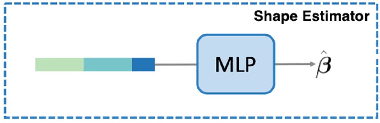 앞서는 SMPL 의 pose parameter 를 예측하는 과정에 대해서 설명이었다면, 논문에서는 SMPL 의 shape parameter 를 예측하는 과정도 있어야 합니다.