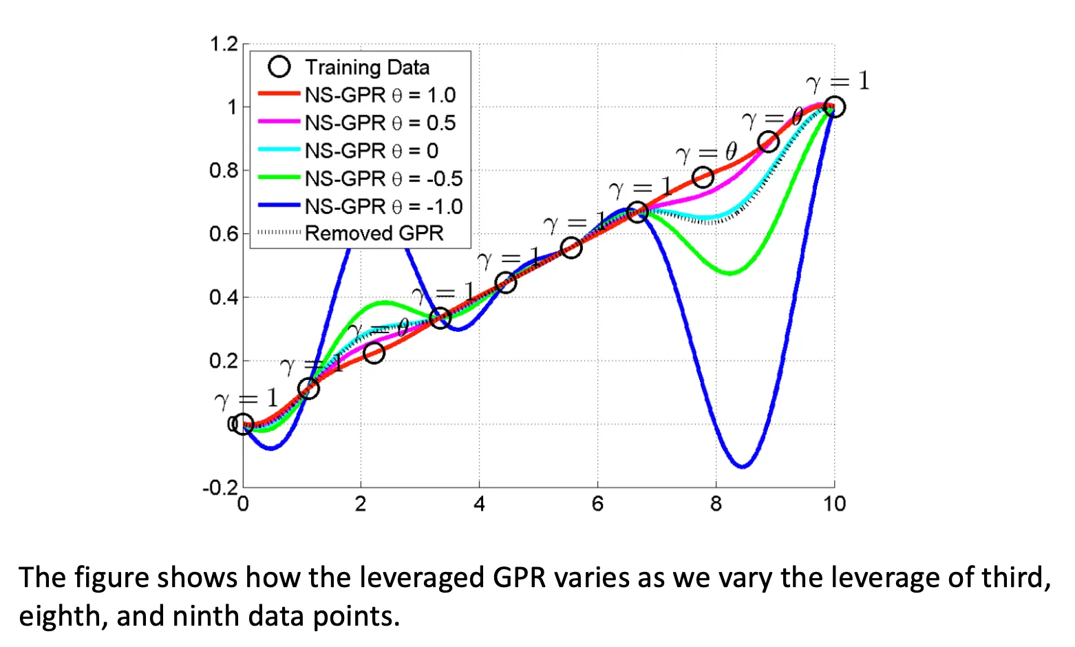 각 training data 는 regressor 가 해당 point 와 가까워지도록 하는 attractive force 역할을 함.