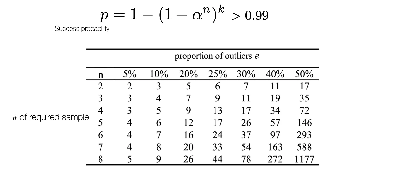 RANSAC 의 성공확률 ?