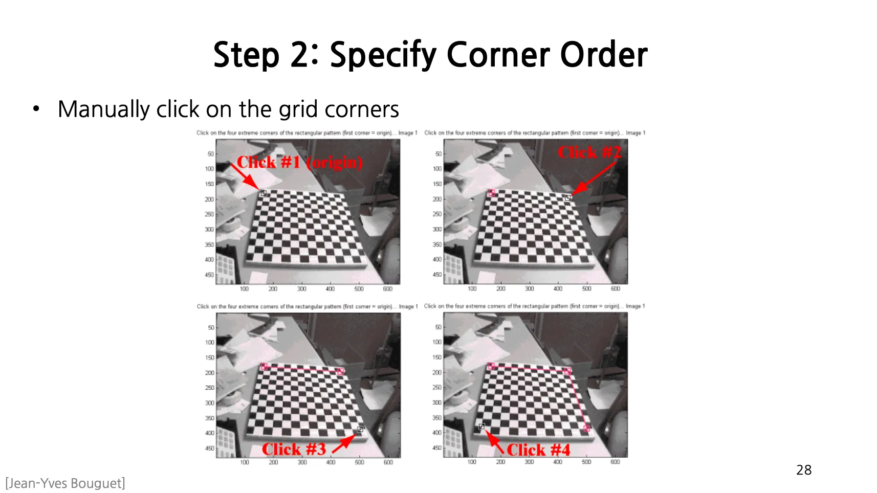 Step 2: Checkerboard 의 네 꼭지점을 클릭함.