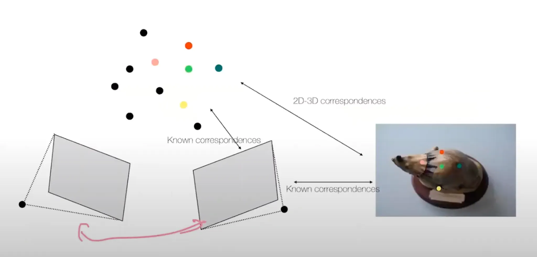 세 번째 view 가 추가될 때, 두 번째 Image 위의 point 와 세 번째 Image 위의 point 사이의 correspondence 와 두 번째 Image 와 3D Point 와의 correspondence 를 알고 있기 때문에 3D Point 와 세 번째 Image 사이의 correspondence 를 알 수 있음.