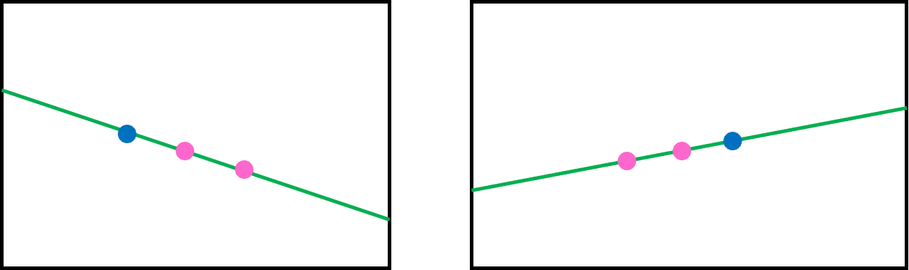 Therefore, both and look like a green line on image plane as below.