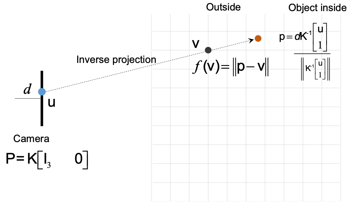 이를 이용해서 ray 위의 모든 점에 대해 Projective TSDF 를 구할 수 있음.