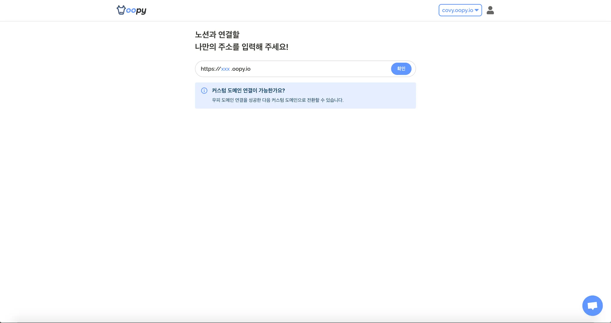 공유를 원하는 Notion 페이지에 가서 공유 옵션을 켜시고, 해당 페이지의 링크를 입력하고 넘어갑니다. 그러면 아래와 같이 oopy 웹사이트 주소를 설정하게 합니다.