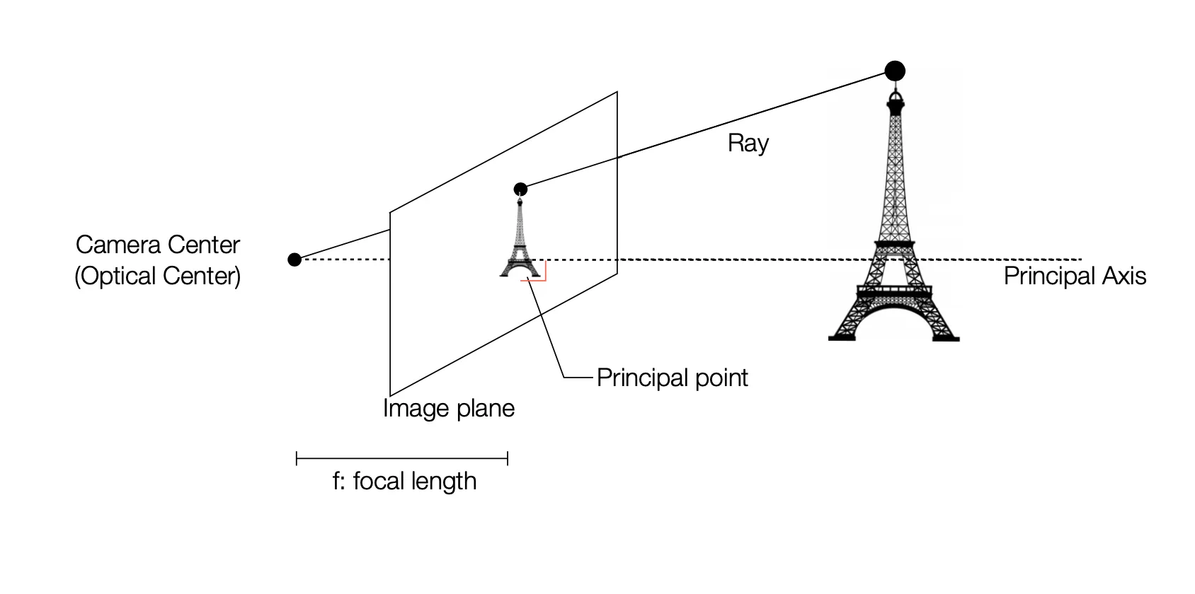 Camera System: Scene + Pinhole (Camera Center) + 2D Plane (Screen)