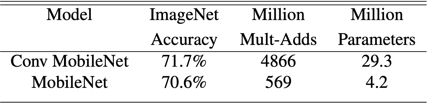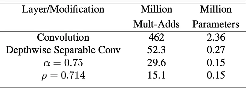 먼저, 논문에서는 MobileNet 을 구성하는 코어 네트워크였던 Depthwise Seperable Convolution 의 효과를 입증합니다.