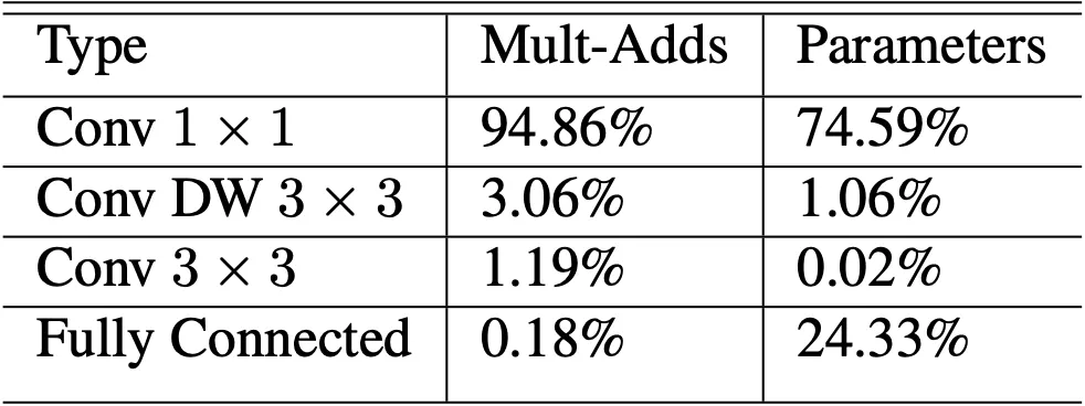 논문에서는 제시한 네트워크가 이러한 Conv 연산에 95% 의 연산 시간을 사용하고 있고, 75% 의 parameter 를 할당하고 있기 때문에 단순히 연산 수만이 적은 것이 아니라 실제 computation 에서도 효율적이라고 주장합니다.