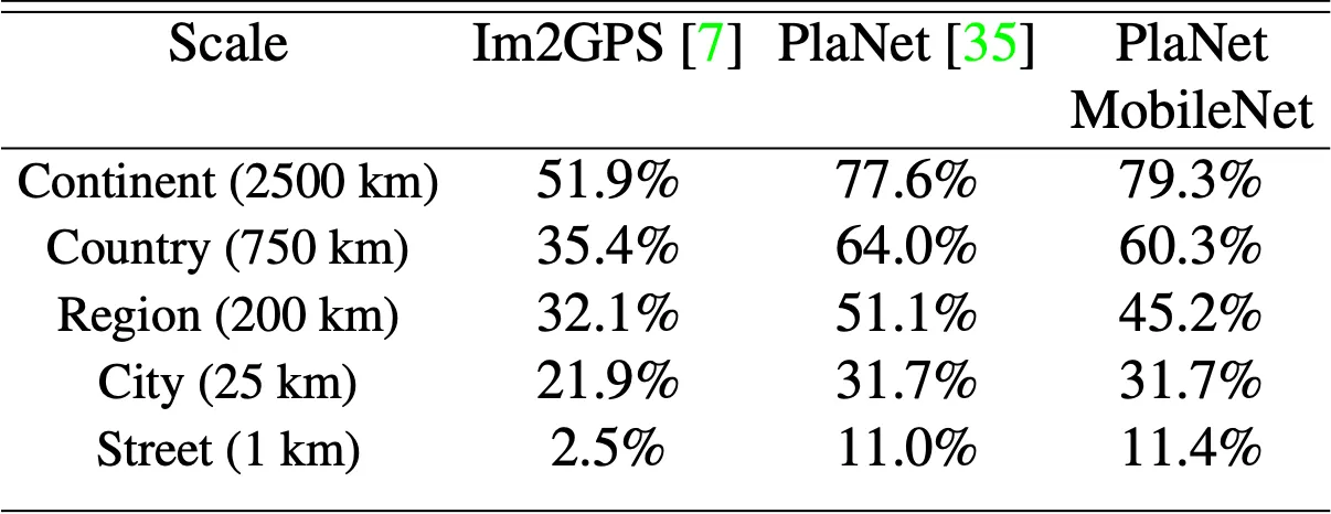 논문에서는 상당히 독특한 실험을 진행합니다. 지구의 사진을 geographic cell 로 classification 하는 task 에 MobileNet 을 학습시켜 본 것입니다. 이러한 task 를 Large Scale Geolocalization 이라고 합니다.