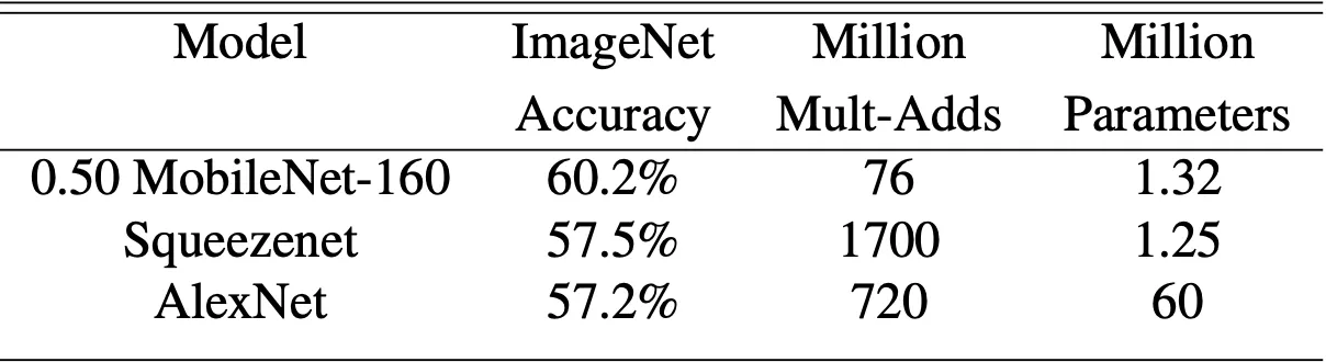 다음으로 논문에서는 기존의 유명한 네트워크와 MobileNet 을 비교하는 작업을 진행합니다.