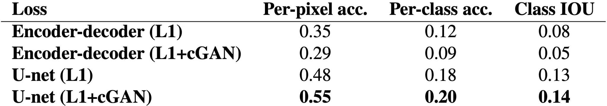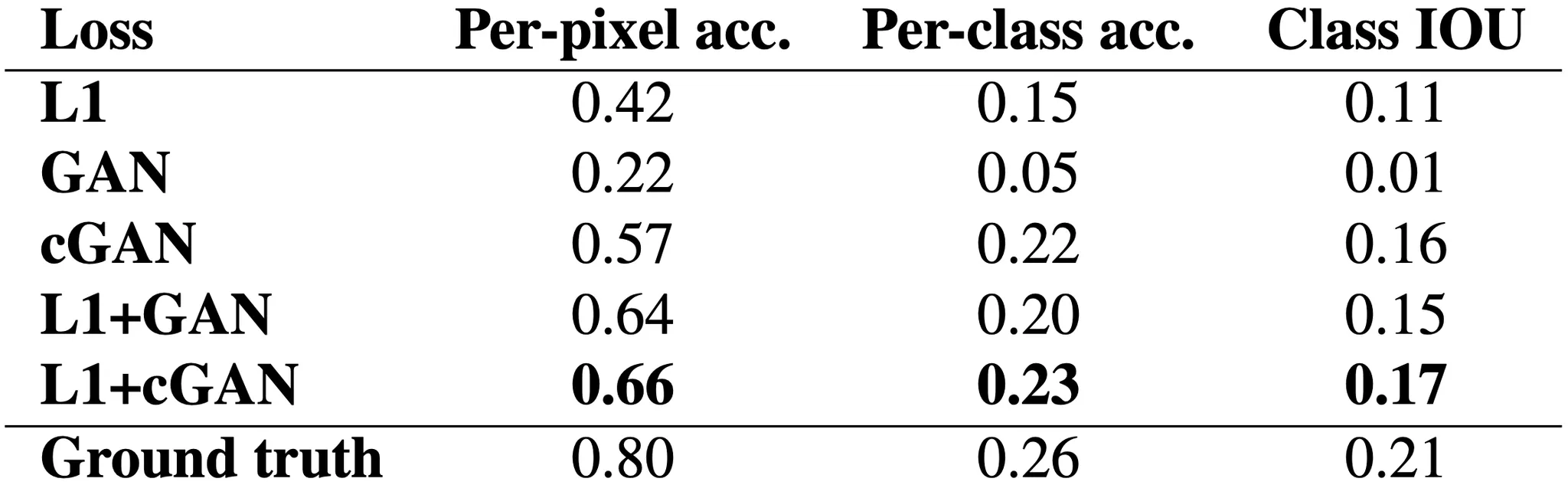 ํ cGAN cost function ์ค๊ณ๋ฅผ ํ๊ฐํ๊ธฐ ์ํด์ FCN-score๋ฅผ ์ด์ฉํฉ๋๋ค.