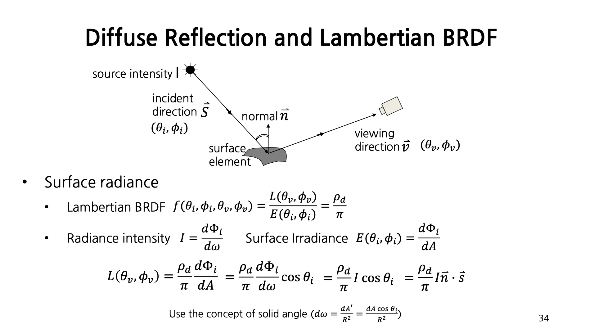 를 Lambert’s cosine Law 라고 함.