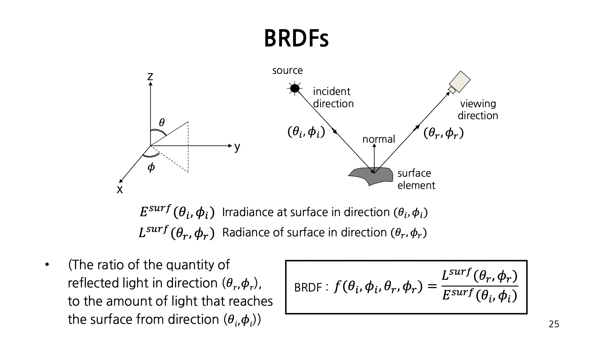 이러한 복잡한 반사 과정을 수학적으로 모델링할 때 BRDF 라는 개념을 자주 씀
