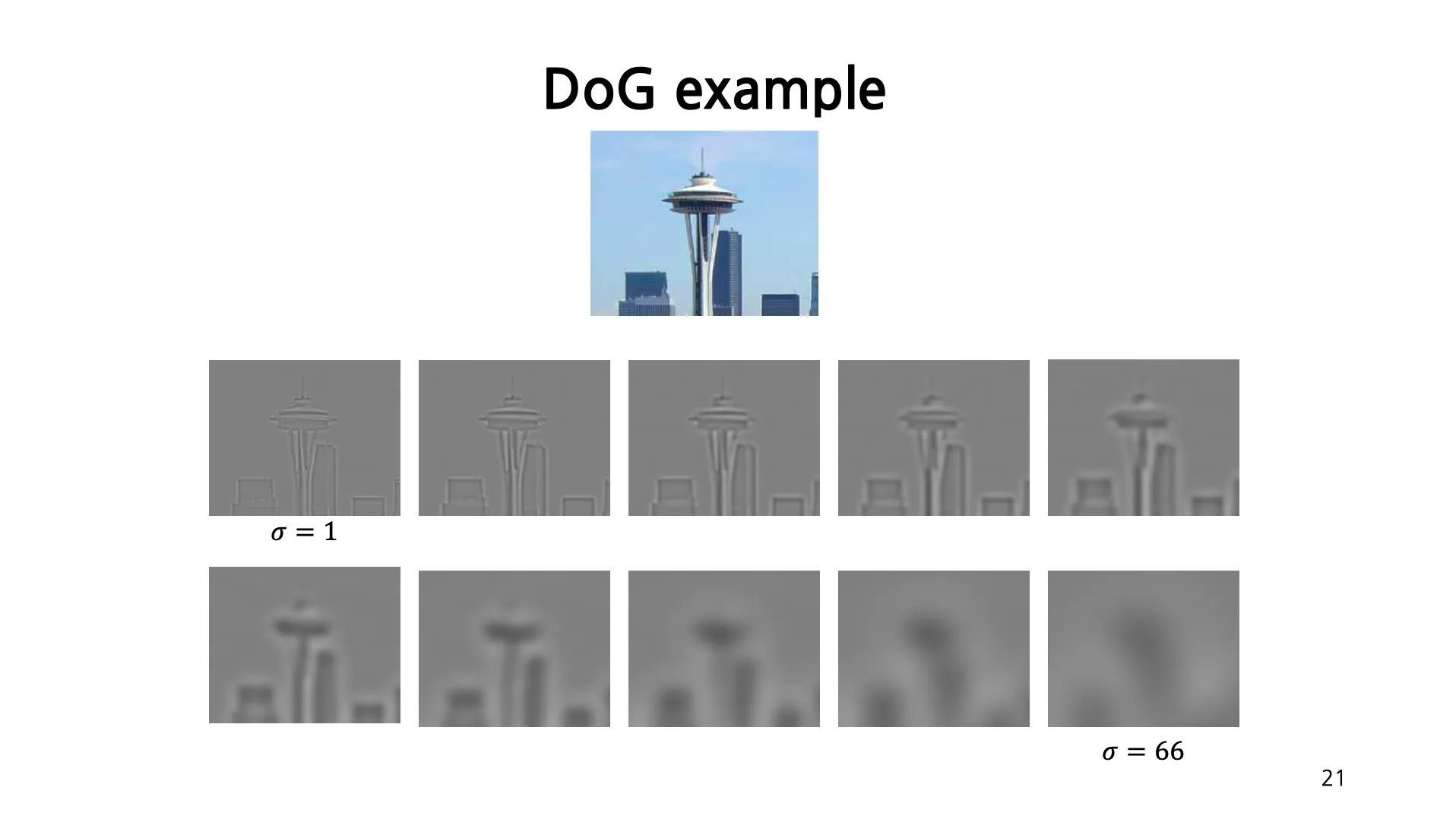 두 개의 인접한 Gaussian 적용 결과를 빼주면, Difference of Gaussian 을 얻어낼 수 있음.