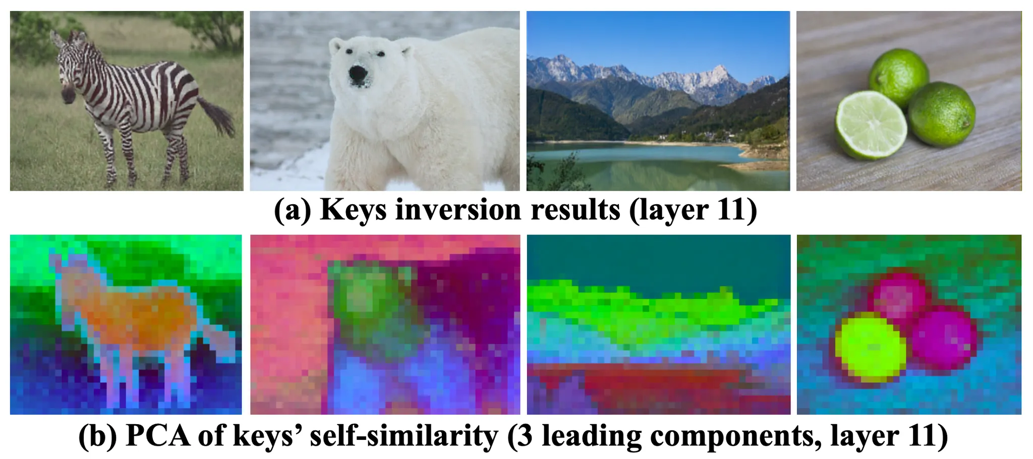 실제로 논문에서는 Appearance 를 정보를 나태내는 벡터로 사용하기로 한 [CLS] token 과 key vector 에 대한 Feature Inversion 결과를 제시합니다.