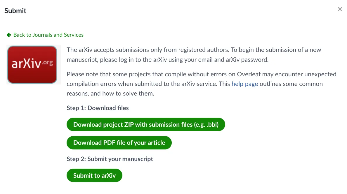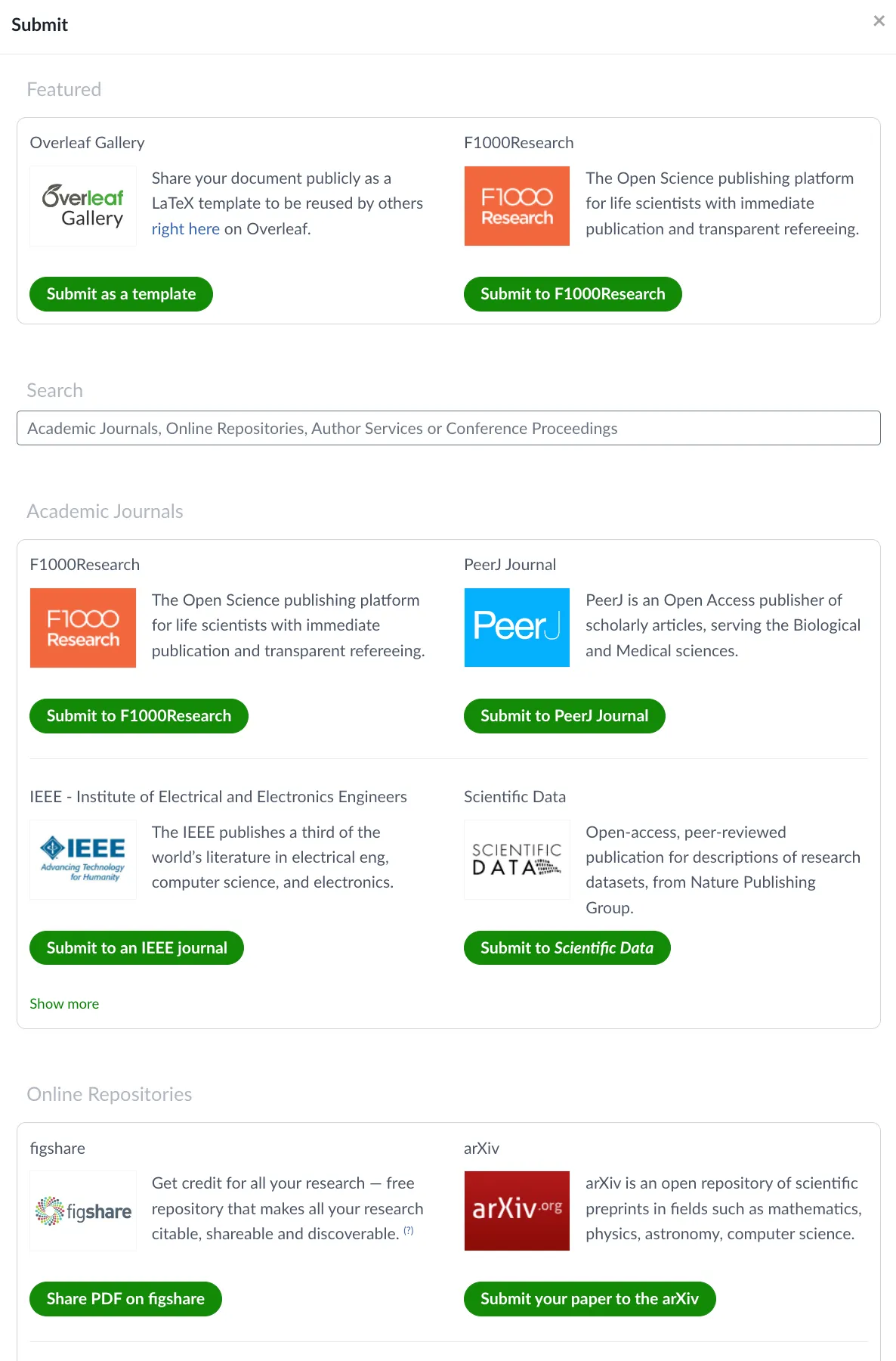 Overleaf 페이지 상단 Submit 버튼을 누릅니다.