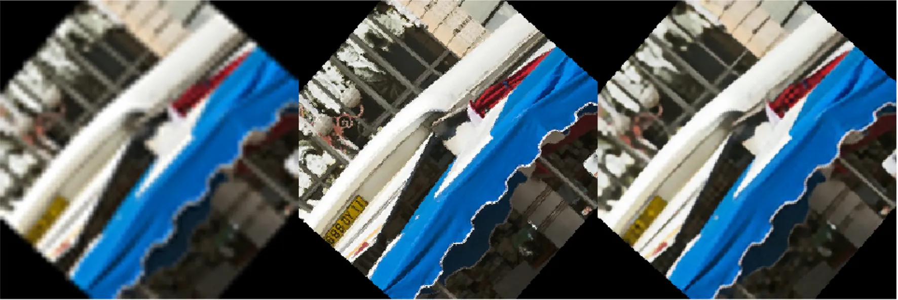 좌(Low Resolution Image) - 중(High Resolution Image) - 우(Super Resolution Image)