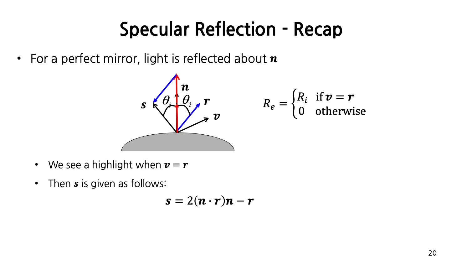 정확히 반대 방향으로 모든 빛이 반사되는 경우가 Specular Reflection.
