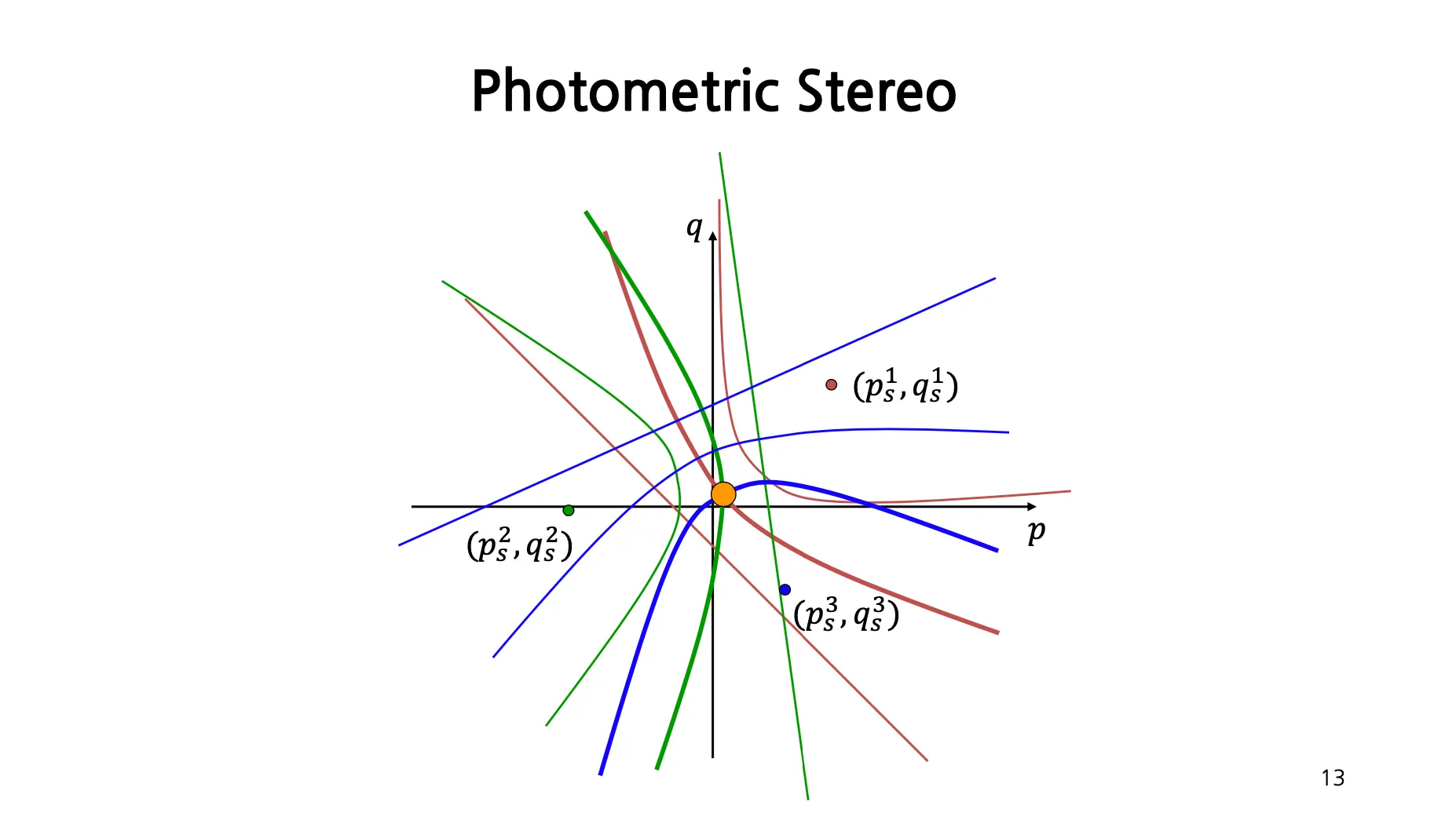 Iso-brightness contour 의 교점에 해당하는 가 실제 물체의 Surface Normal 값임.