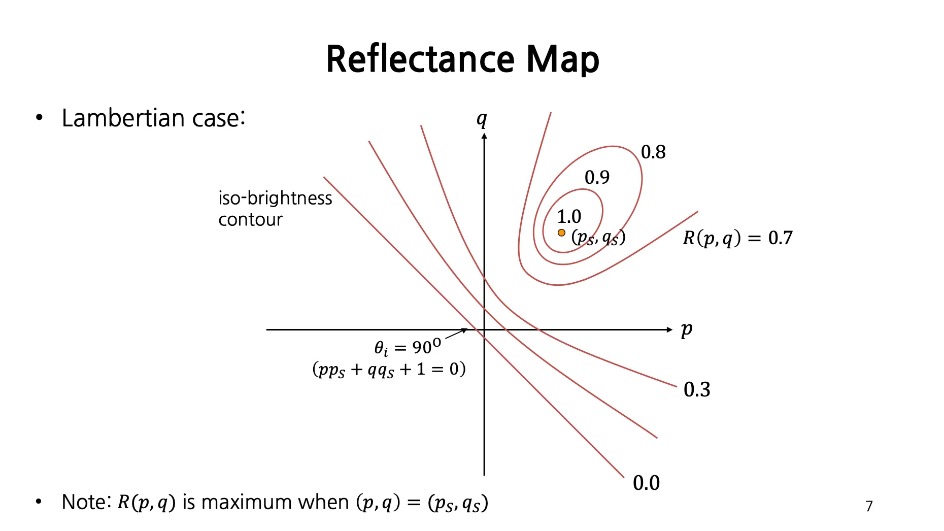 Gradient Space 상의 Iso-brightness contour 는 아래와 같음.