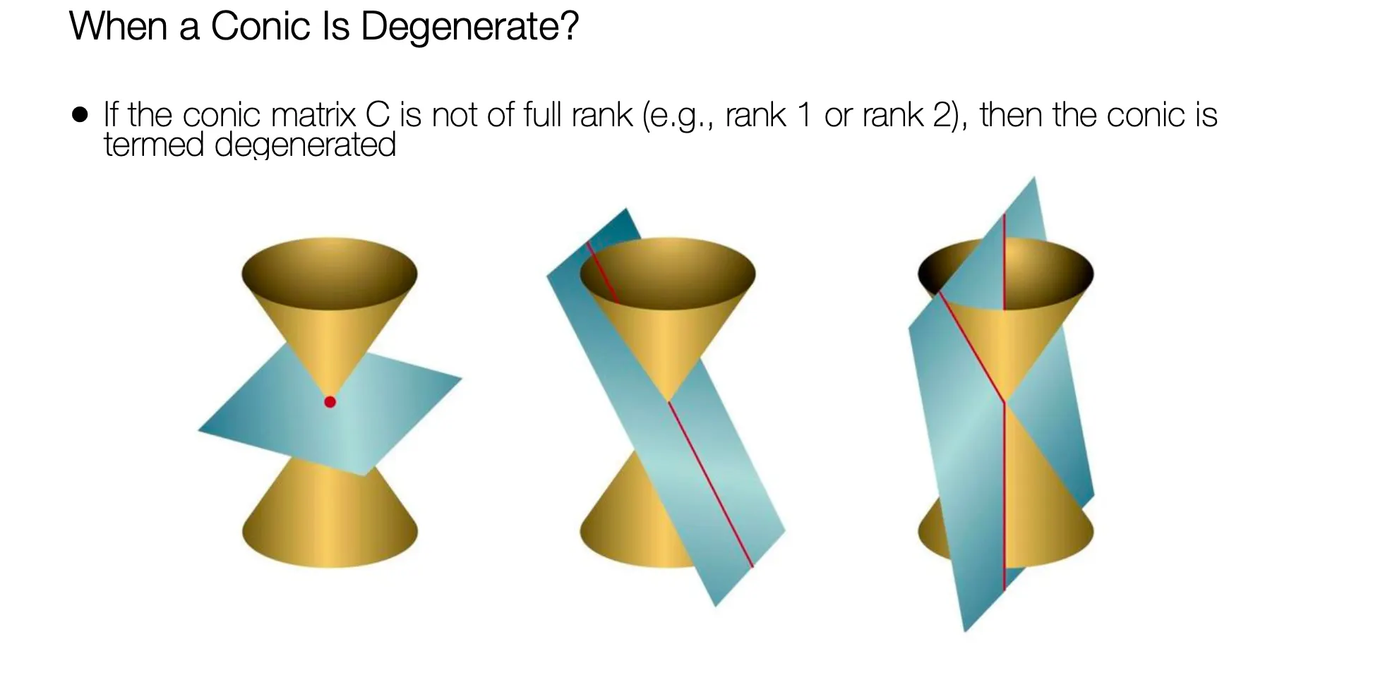 즉, 와 사이를 잇는 직선 위 모든 점이 Conic Equation 을 만족함. → Line 이 Conic 이자, degenerated case 임.