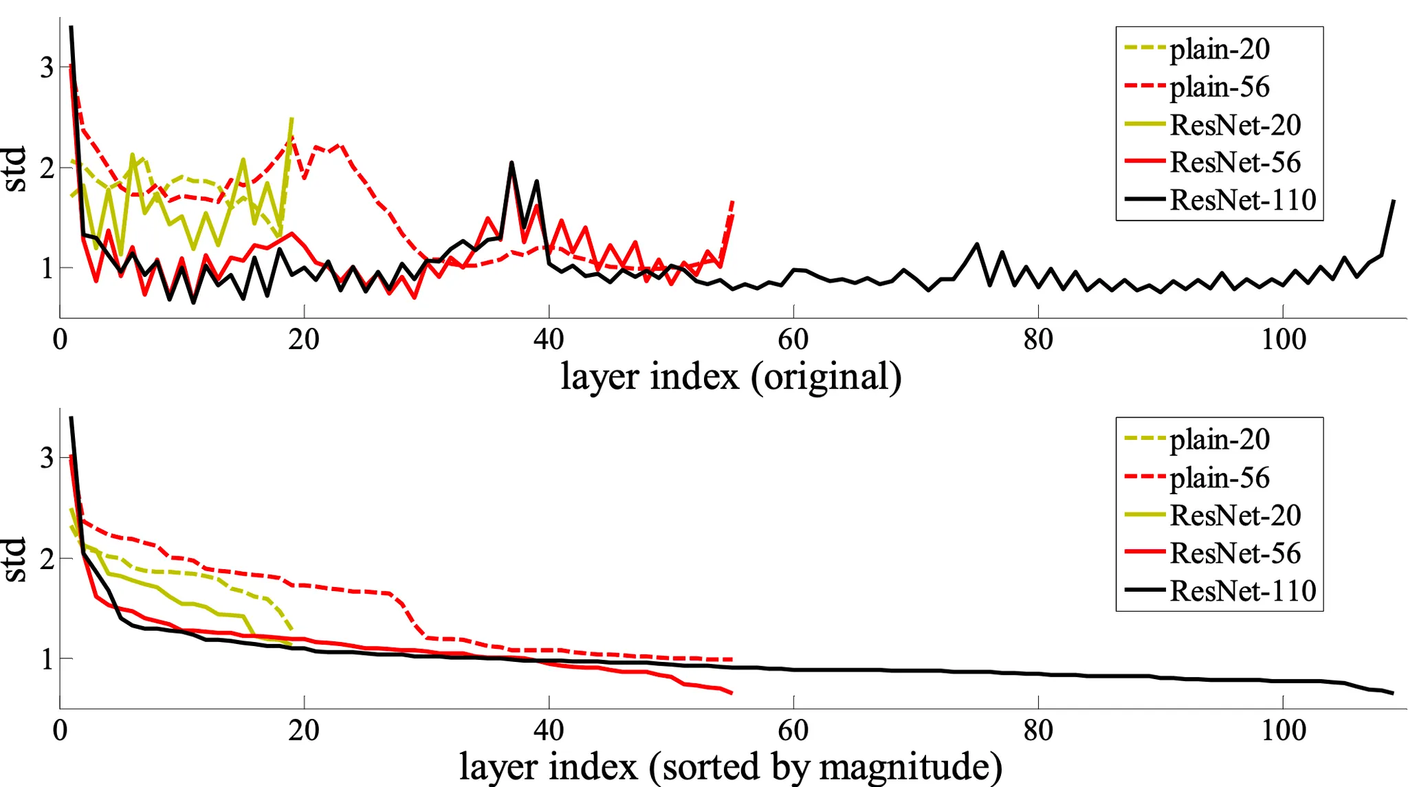 ผ๋ฌธ์์๋ batch normalization ์ดํ, ๊ทธ๋ฆฌ๊ณ activation์ด์ ์ ๊ฐ๋ค์ธ response์ ๋ํ ๊ทธ๋ํ๋ฅผ layer index์ ๋ํด ํํํ ๋ด์ฉ์ ์ ์ํ์ต๋๋ค.