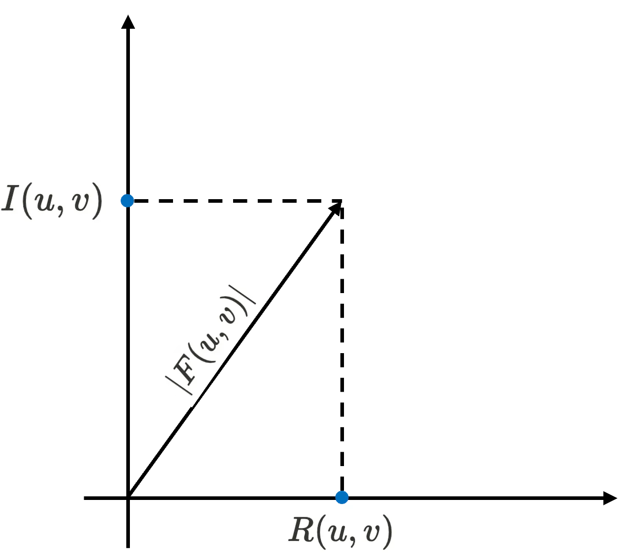 Below figure is the visualization of the output of Fourier transform in 2D coordinate system where -axis indicates real domian and -axis indicates imaginary domain with magnitude spectrum indicated.