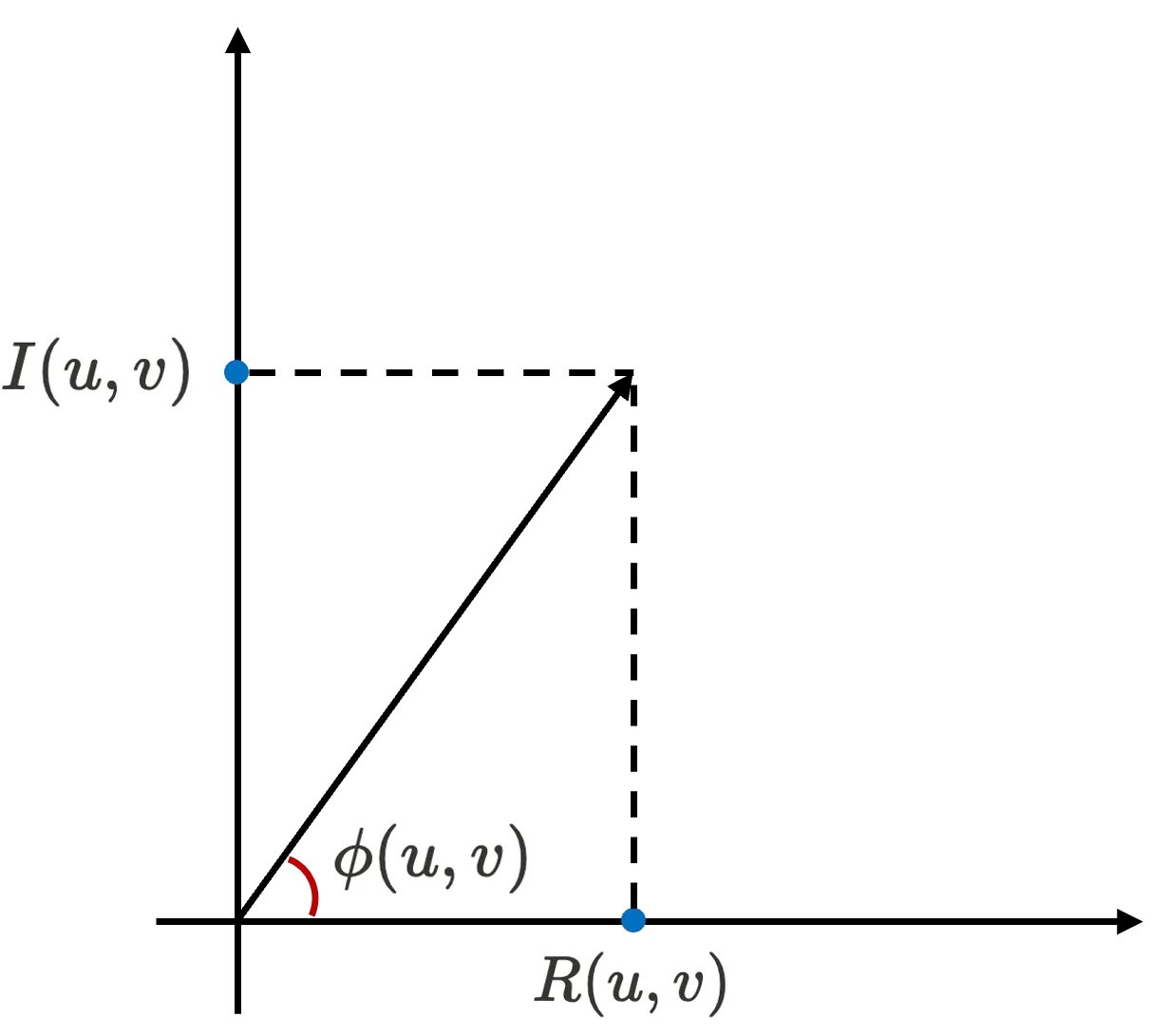 Below figure is the visualization of the output of Fourier transform in 2D coordinate system where -axis indicates real domian and -axis indicates imaginary domain with phase spectrum indicated.
