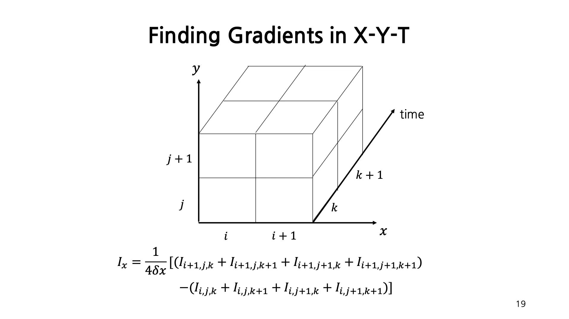 하나의 pixel 이 아닌, window 내부의 여러 pixel 하나하나에 대해서 space 상의 직선을 얻을 수 있고, 가장 교점이 많은 점이 실제 patch 가 움직이는 , 임을 알 수 있음.