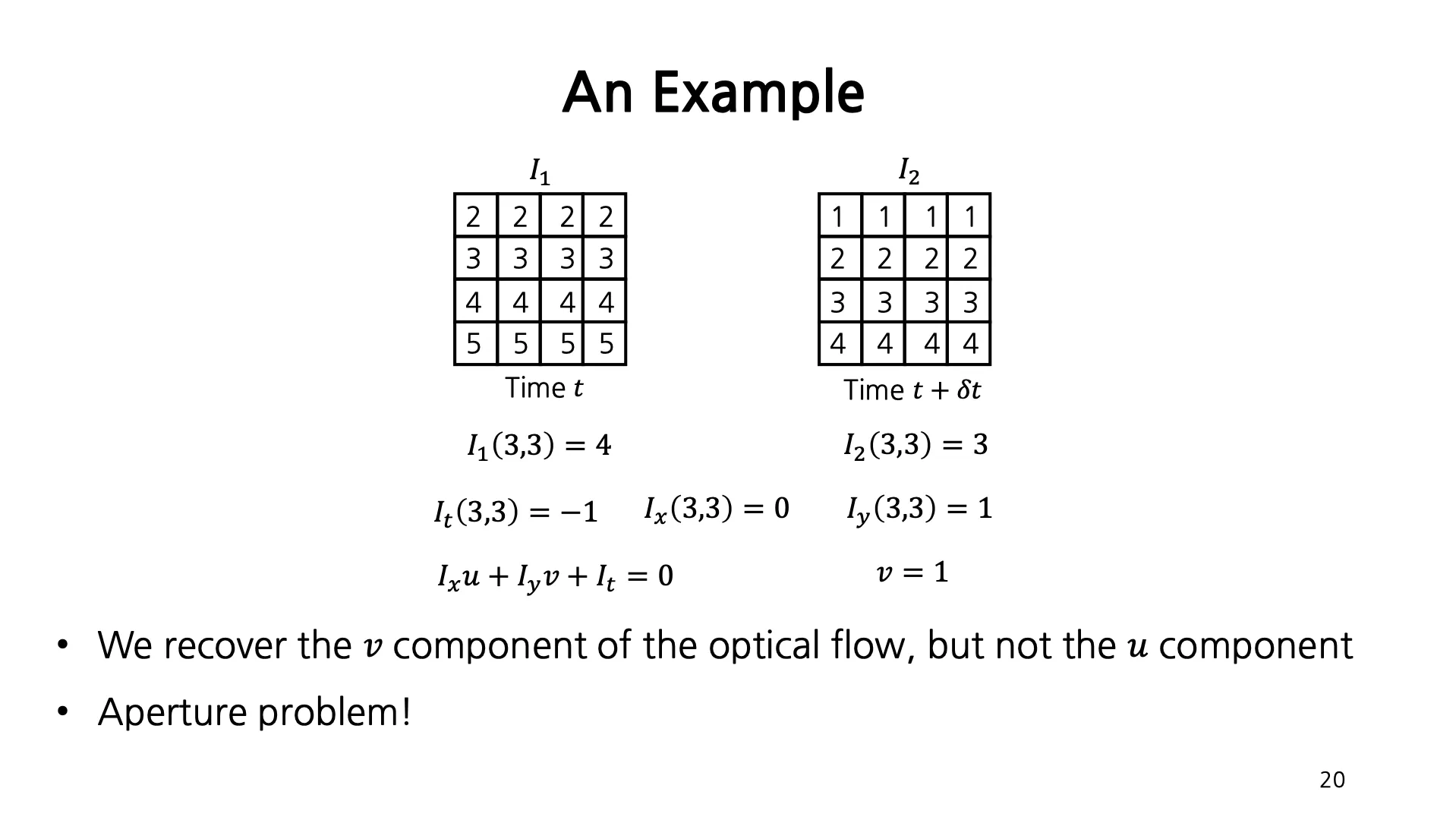 전체 영역을 보면 어느 방향으로 움직이는지 알 수 있지만, 작은 Aperture 영역만을 보면 어느 방향으로 움직이는지 확실하지 않음. (Motion direction in a small aperture is ambiguous)