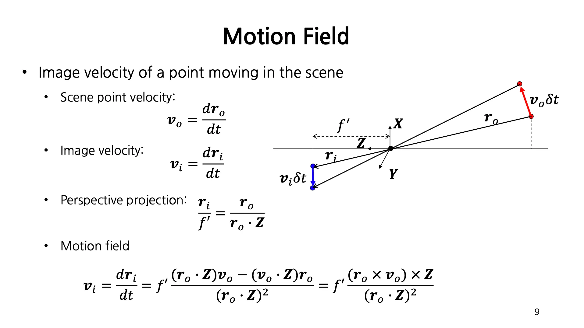 Scene 에서 움직이는 점에 대한 Image Velocity 는 다음과 같이 정의됨.