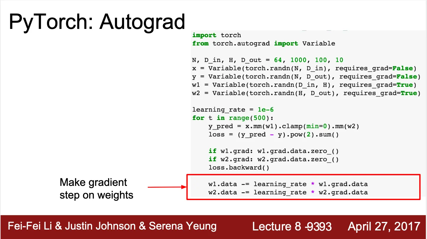PyTorch → loss.backward()