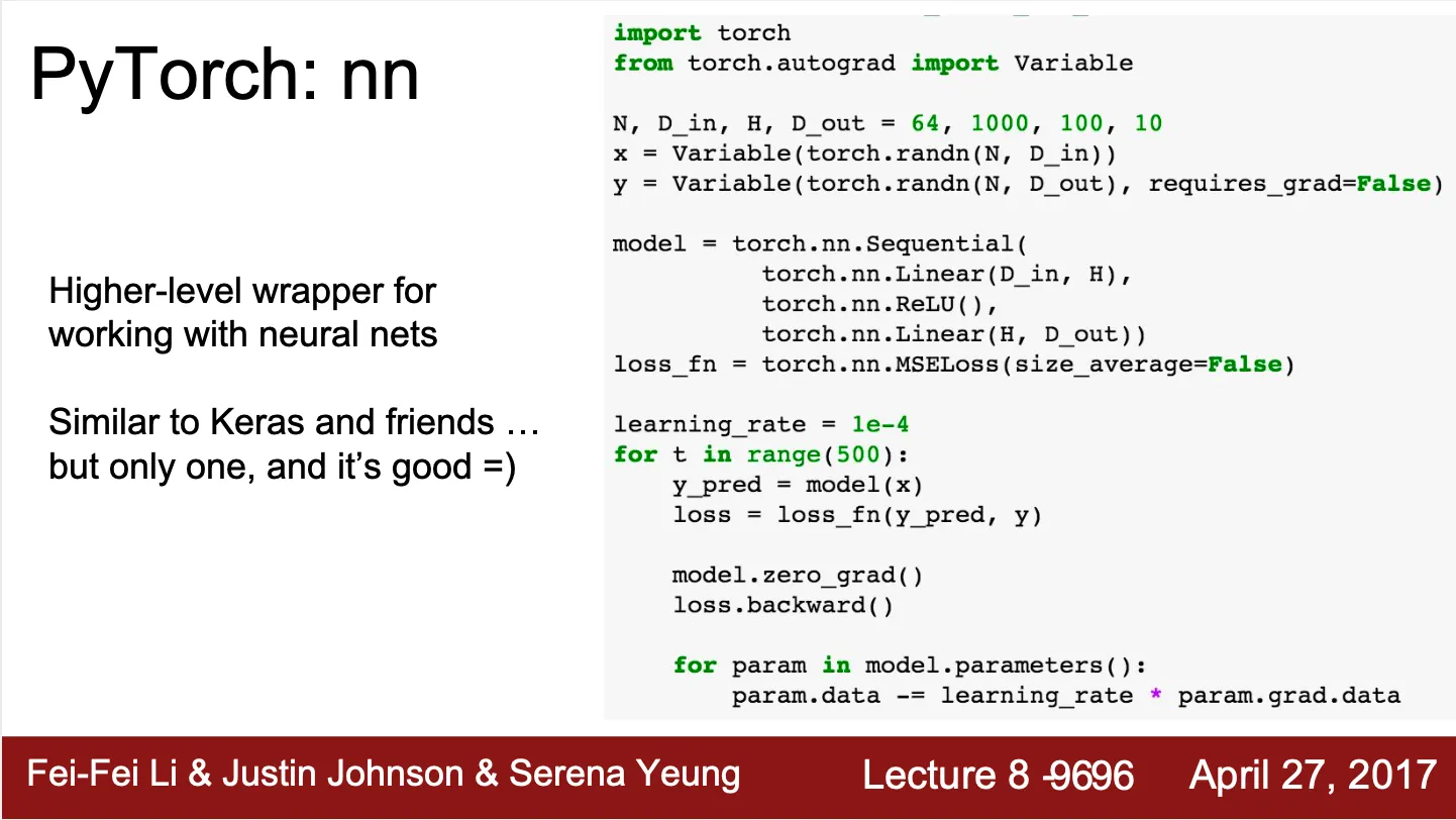 Higher-level wrapper 인 nn 사용 가능