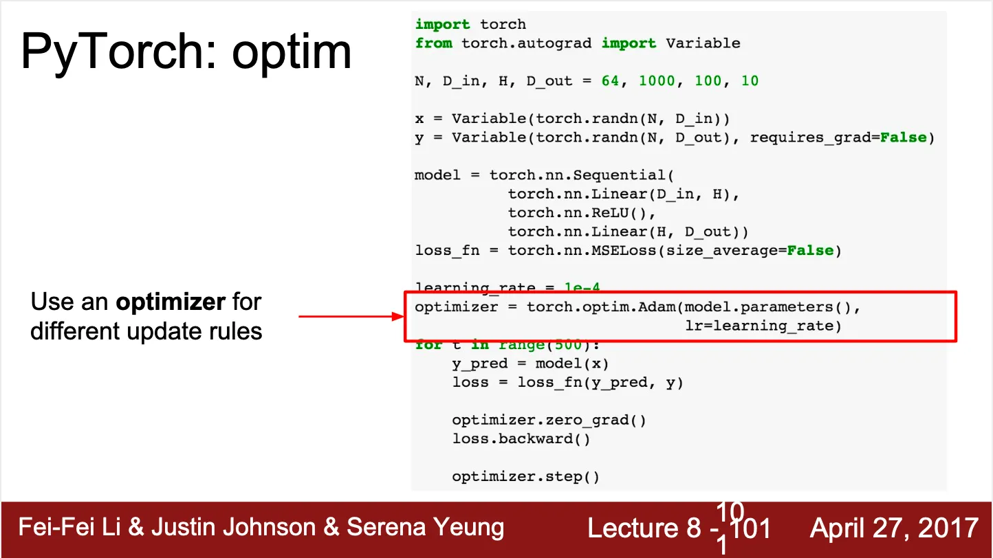 Pre-defined optimizer 사용 가능