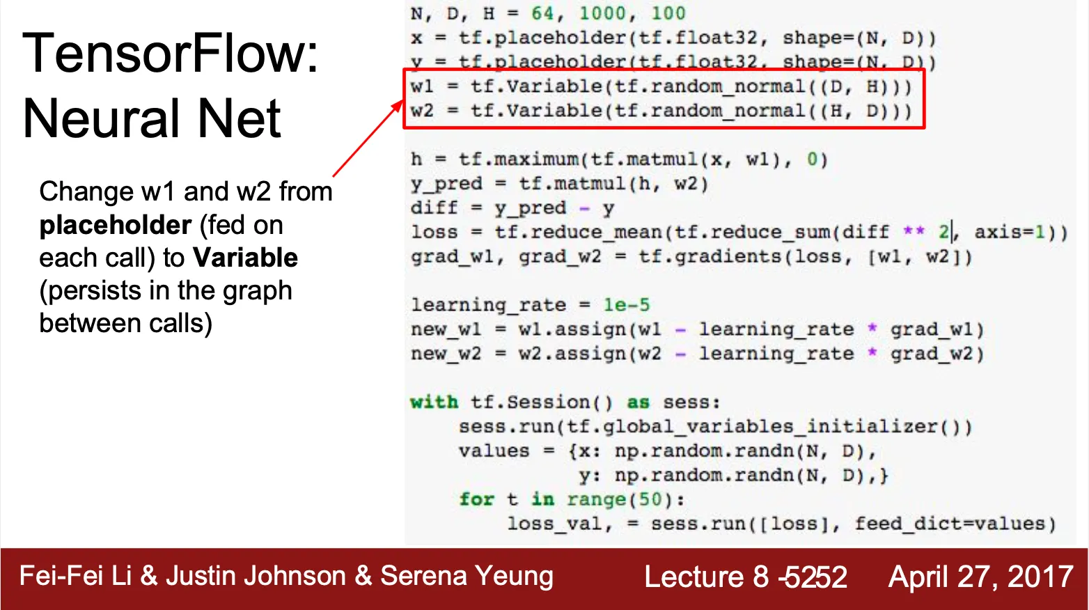 이 과정에서 GPU, CPU 간의 통신이 필요한 점을 개선하기 위해 weight 를 TensorFlow 내부의 변수로 선언하게 됨
