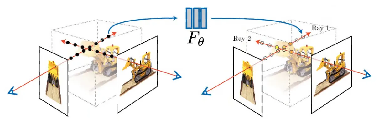 Ray 상에서 uniform interval 로 sampling 을 할 수도 있지만, 그렇게 하면 항상 보는 점들만 보게 됨.