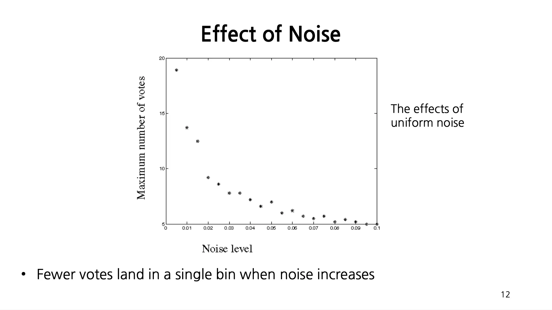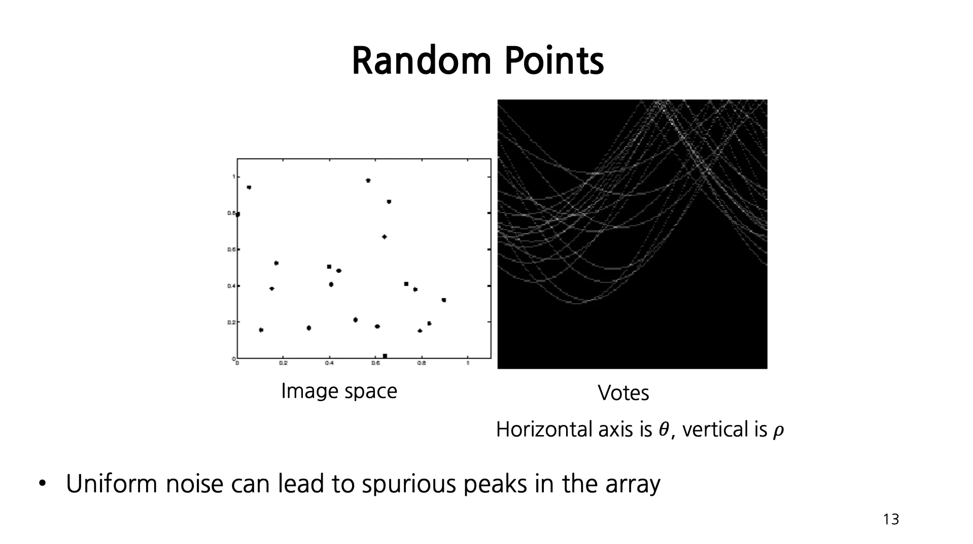 Uniform Noise 는 Accumulator Array 상에서 그럴싸한 가짜 peak 를 만들어 낼 수 있음.