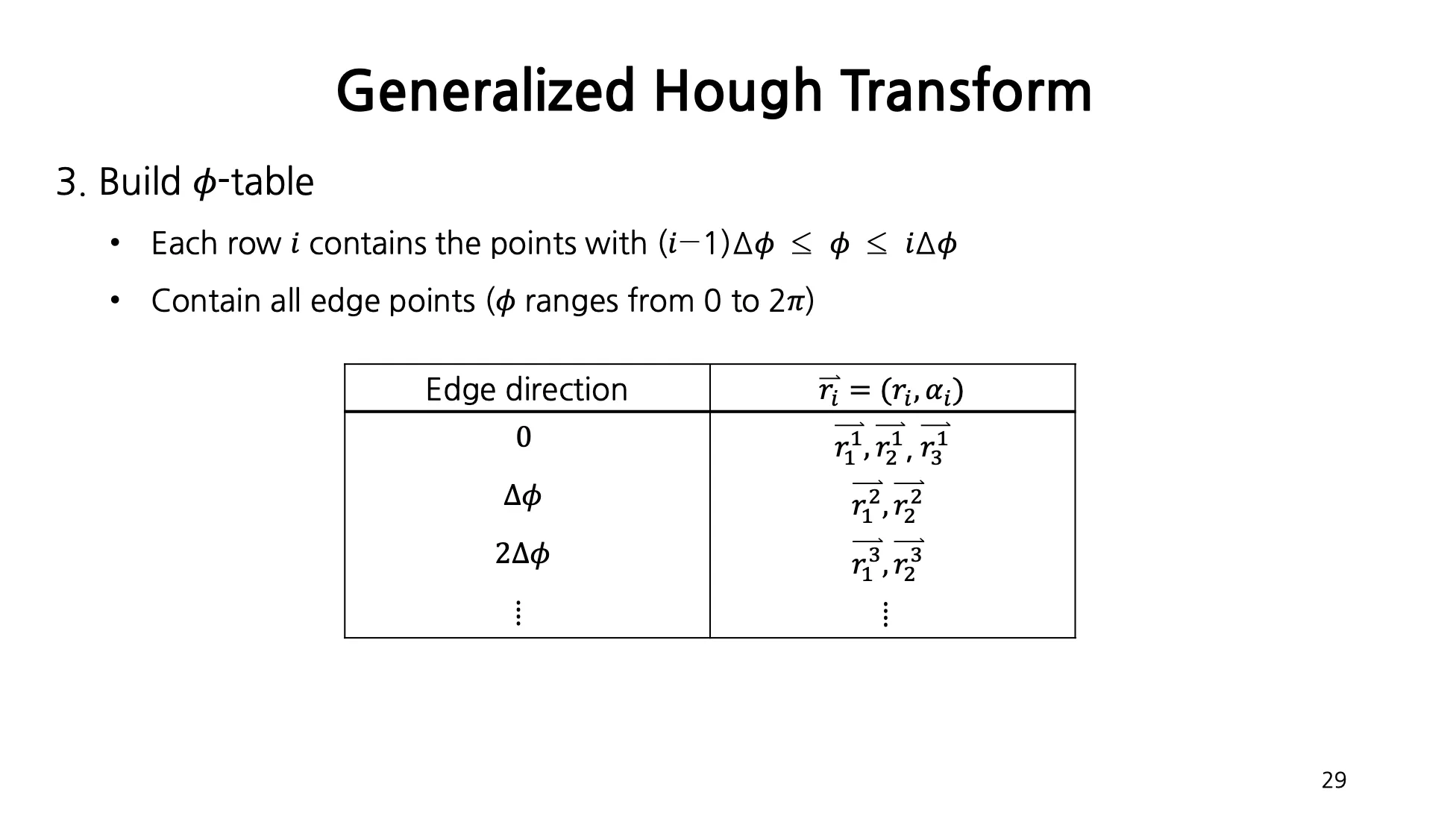 Edge 와 수직인 gradient direction 을 활용하여 Accumulator Array 의 computation cost 를 줄일 수 있음.