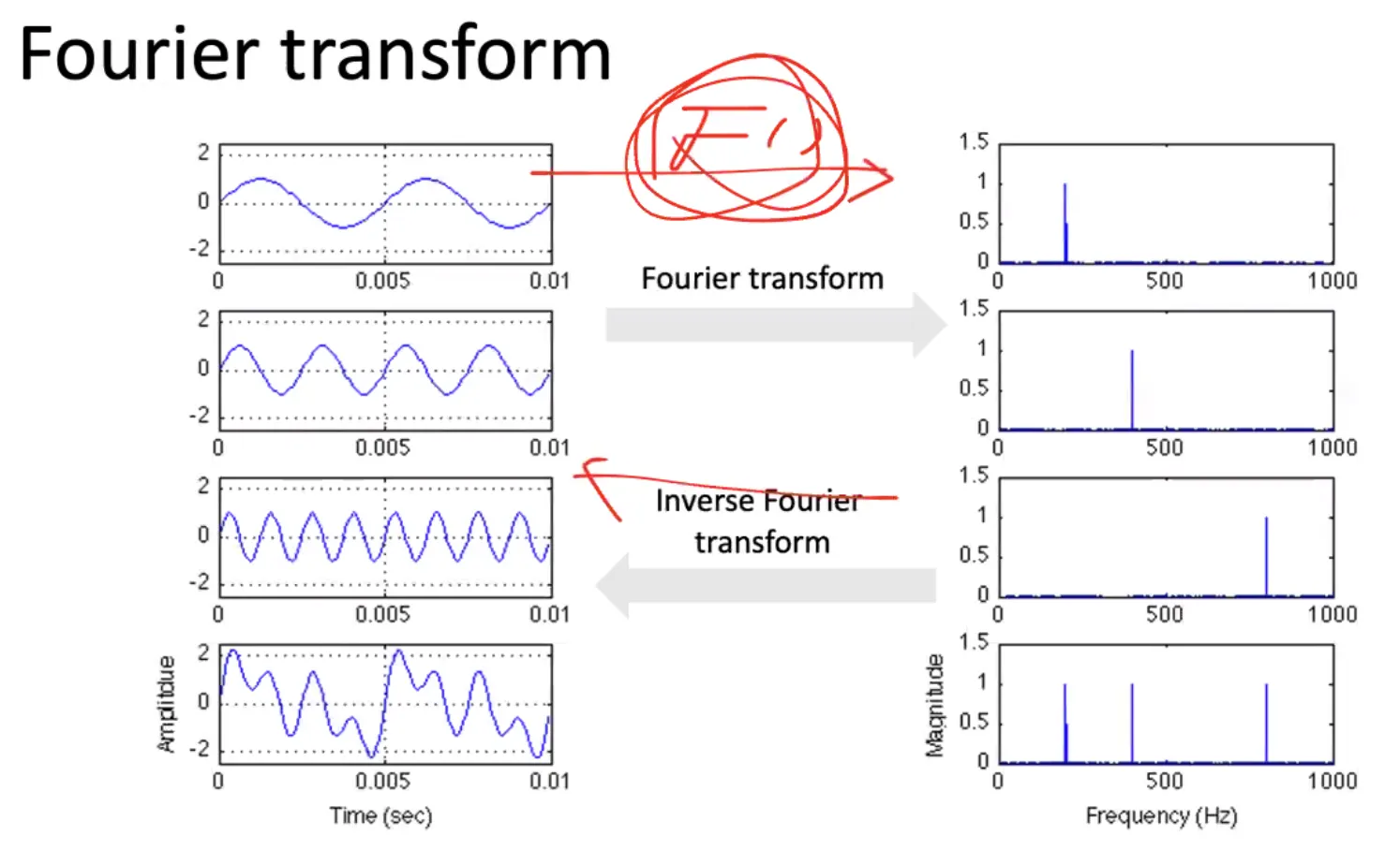 time domain 의 wave 를 주파수 domain 으로 변경하기 위한 것