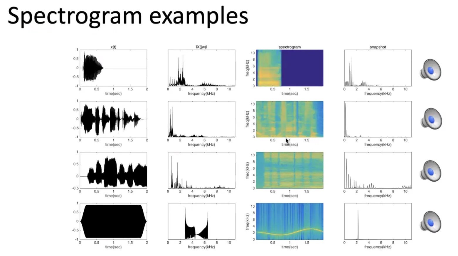 시간에 따른 frequency 구성을 표현 (colormap 등으로 한 timestep 에서의 frequency 의 구성 자체도 표현할 수 있음)