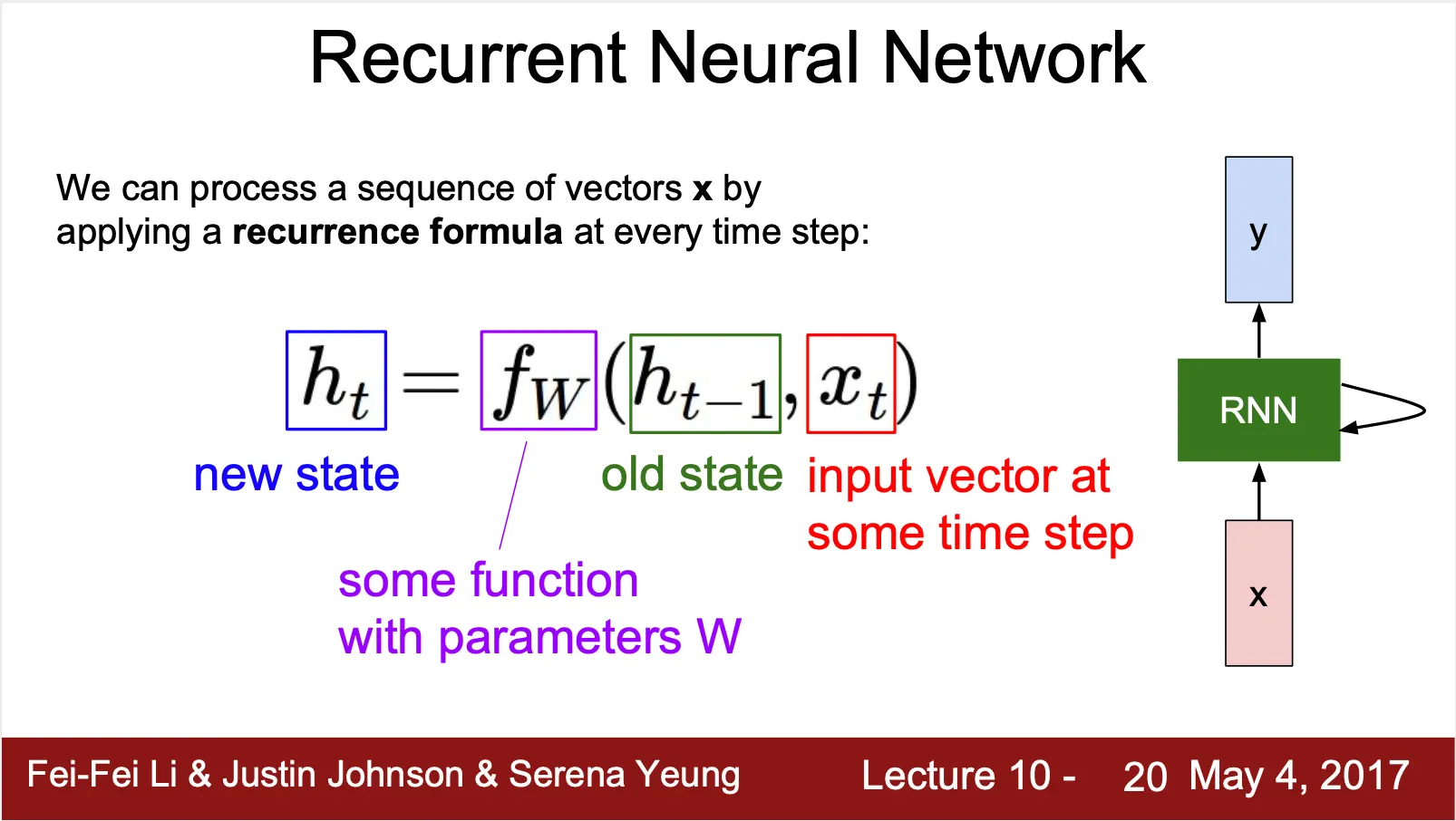 새로운 hidden state 는 이전 hidden state 와 input 과의 연산을 통해서 계산