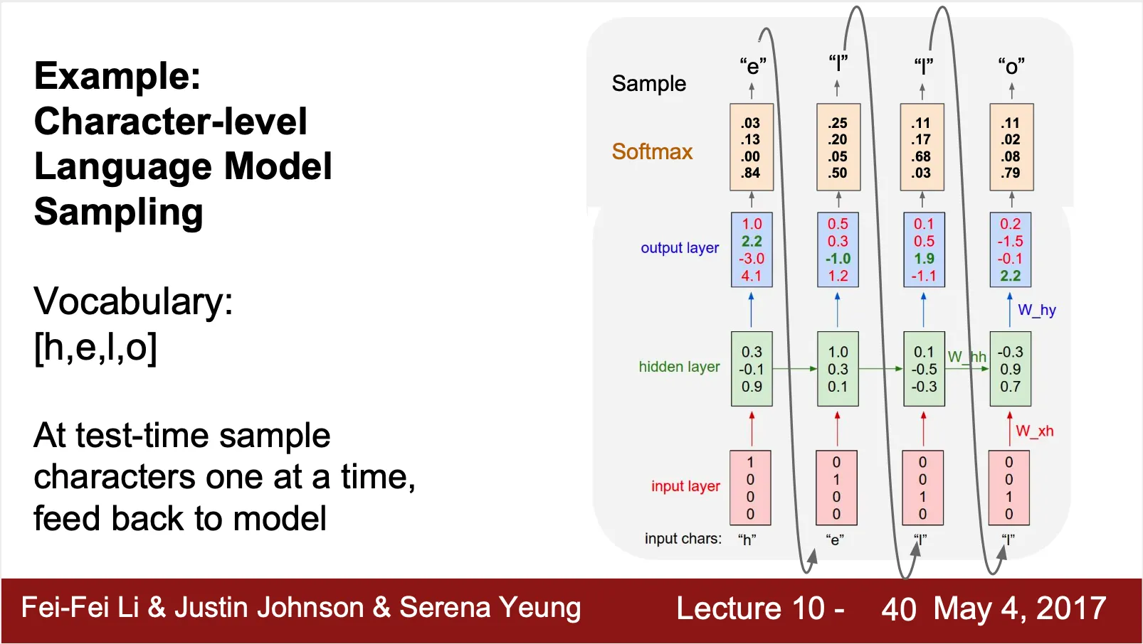 Sofrmax 결과를 사용해 sampling 한 결과를 다음 recurrent cell 의 input 으로 사용