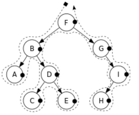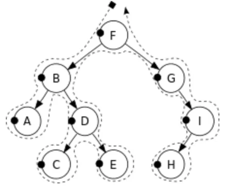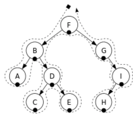 F → B → A → D → C → E → G → I → H