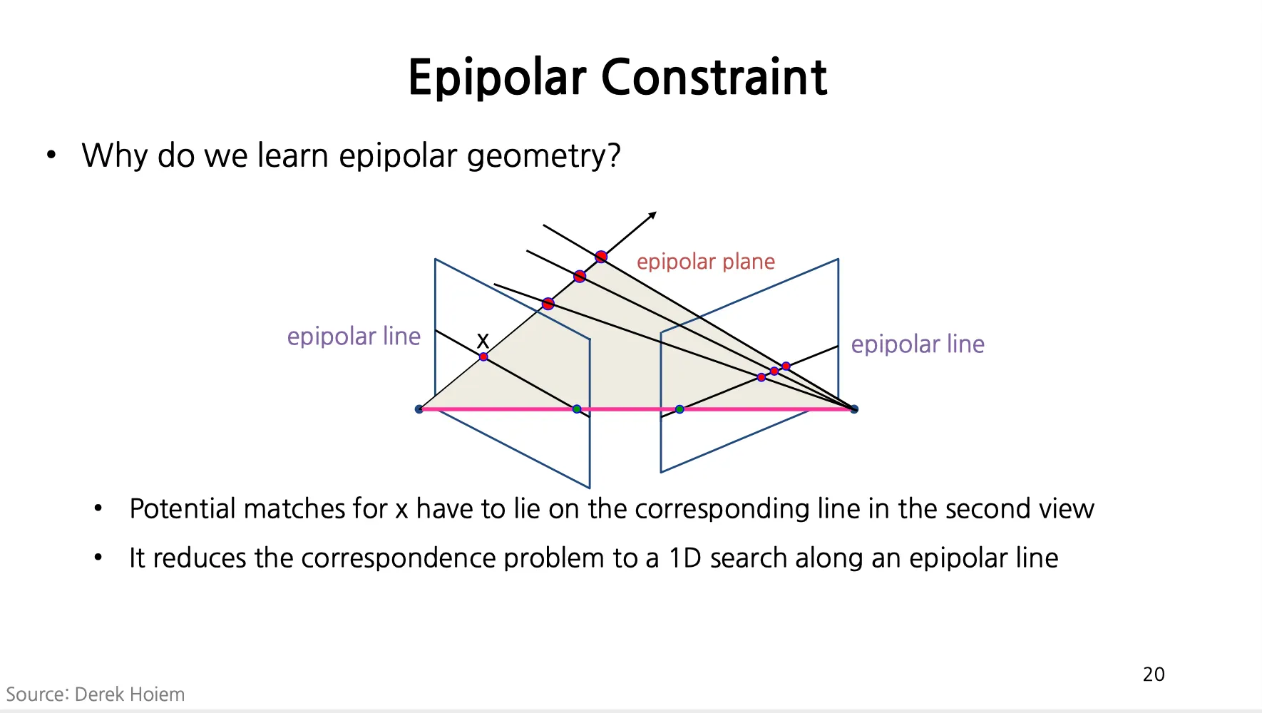 Search 문제를 2D (Image Plane) 에서 1D (Epipolar Line) 로 낮춤