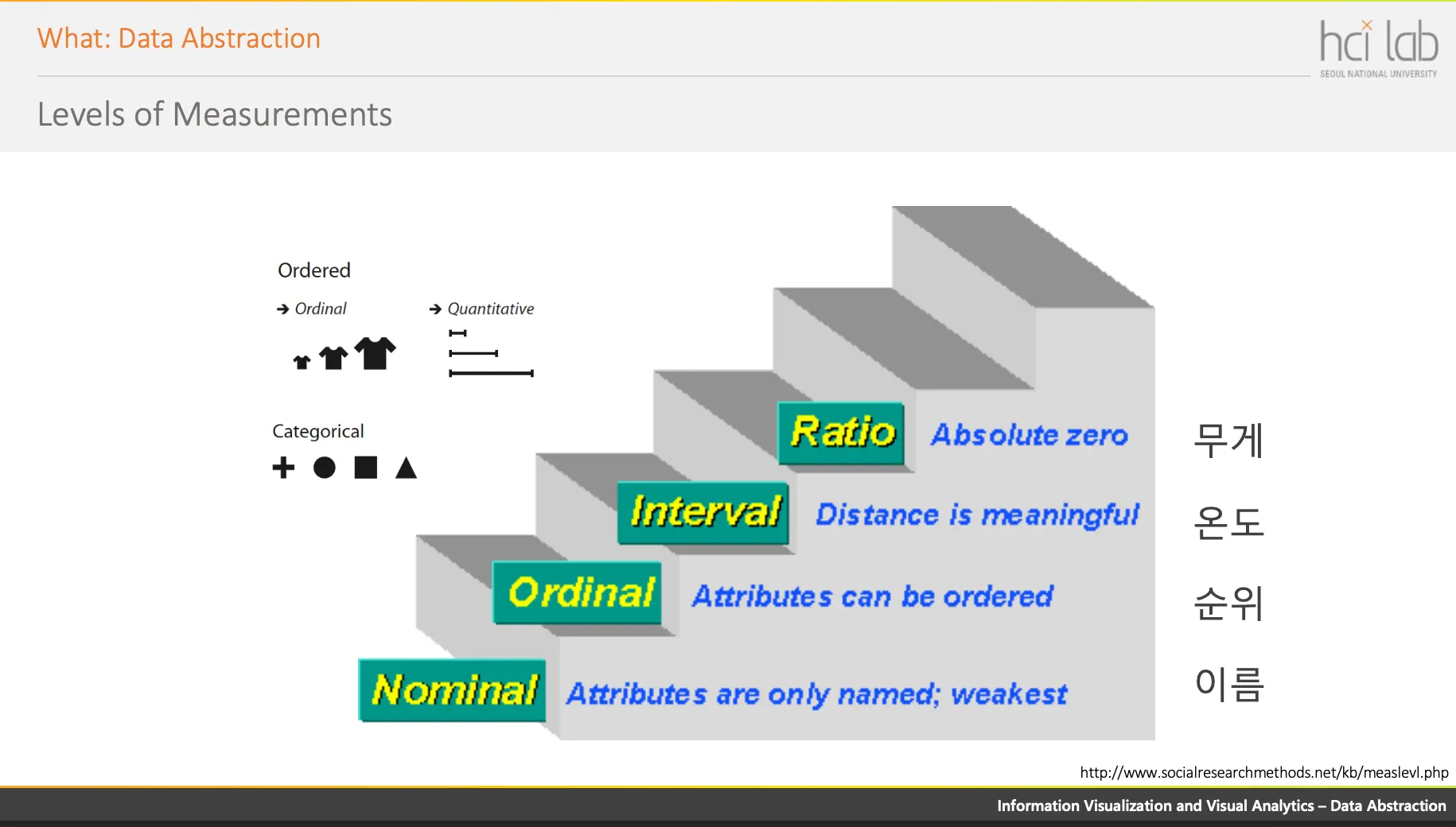 cell contains values: quantitative, ordinal (순위 같은 것들), nominal (이름 같은 것들)
