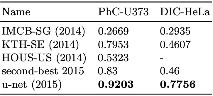 Segmentation results(IOU) on the ISBI cell tracking challenge 2015