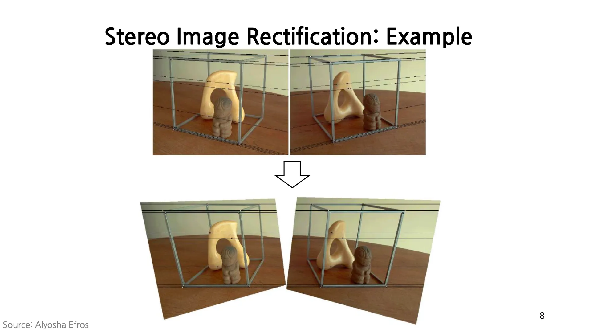 Epipolar Line 이 동일한 y 값을 가지는 직선이 되도록 homography 를 활용하여 변환