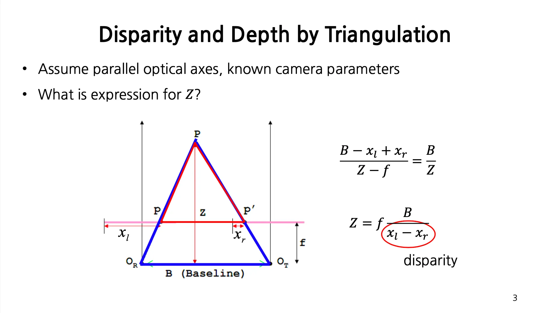 Parallel Optical Axes, Known Camera Parameter 조건에서 depth?