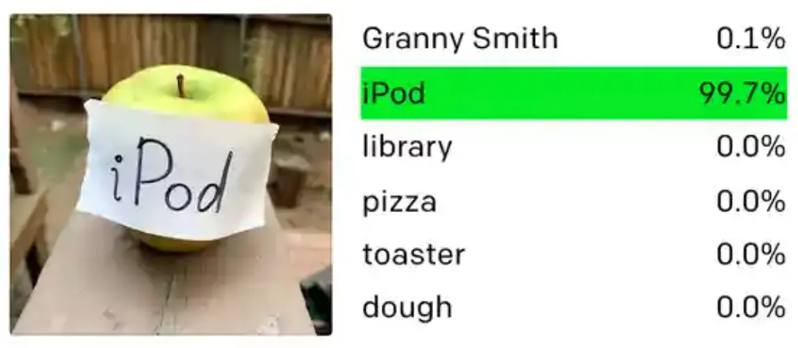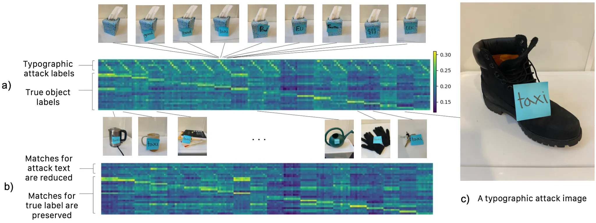 일례로, “iPad” 라고 적혀 있는 사과가 그려진 이미지는 neural network 가 실제 해당 과일 (Apple) 을 인지하기 보다는 적혀져 있는 텍스트 (iPad) 에 기반한 예측을 하는 경우가 많았습니다. 논문에서는 이러한 현상이 나타나는 근본적인 이유를 Real-World Training Data Image 에 잦은 빈도로 등장하는 텍스트들에서 온다고 생각했습니다.