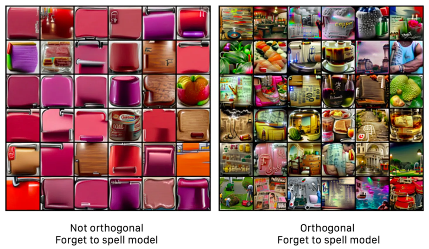 더불어 Forget To Spell Model 에서도 일부 텍스트 형태가 보이는데, 이러한 텍스트들은 표현하지 않고자 했던 Latin Alphabet 과 닮아 있지 않고 Asian Text 형태와 닮아 있는 것을 확인할 수 있었습니다.